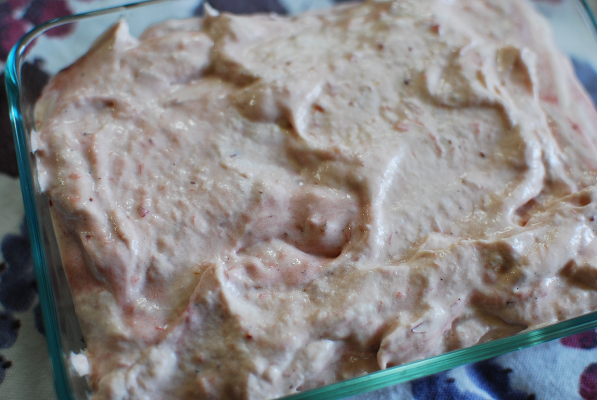 I first heard Nigella Lawson rave about no-churn on Morning Edition a few months ago, and I’d been wanting to try it ever since. So, rather than jar another pint of jam with this week’s remnant rhubarb, strawberries, and cherries, I thought I’d give a red-medley version a whirl.