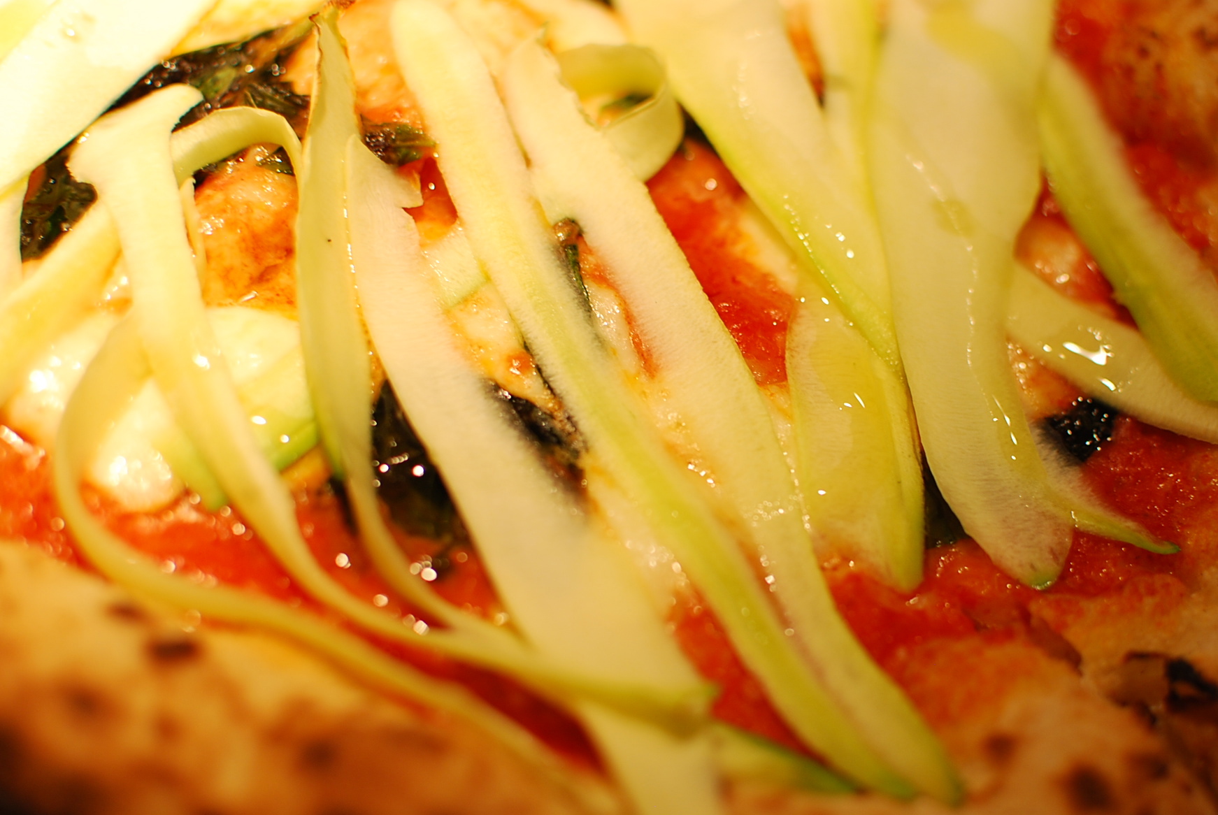 Genius solution: Order a Margherita pie from the wood-fired place down the street. Wash zucchini in bathroom sink. Pick up pie. Using a vegetable peeler, shave curls of zucchini onto hot pie. Drizzle with a little olive oil. Eat three pieces. Feel smug. And full.