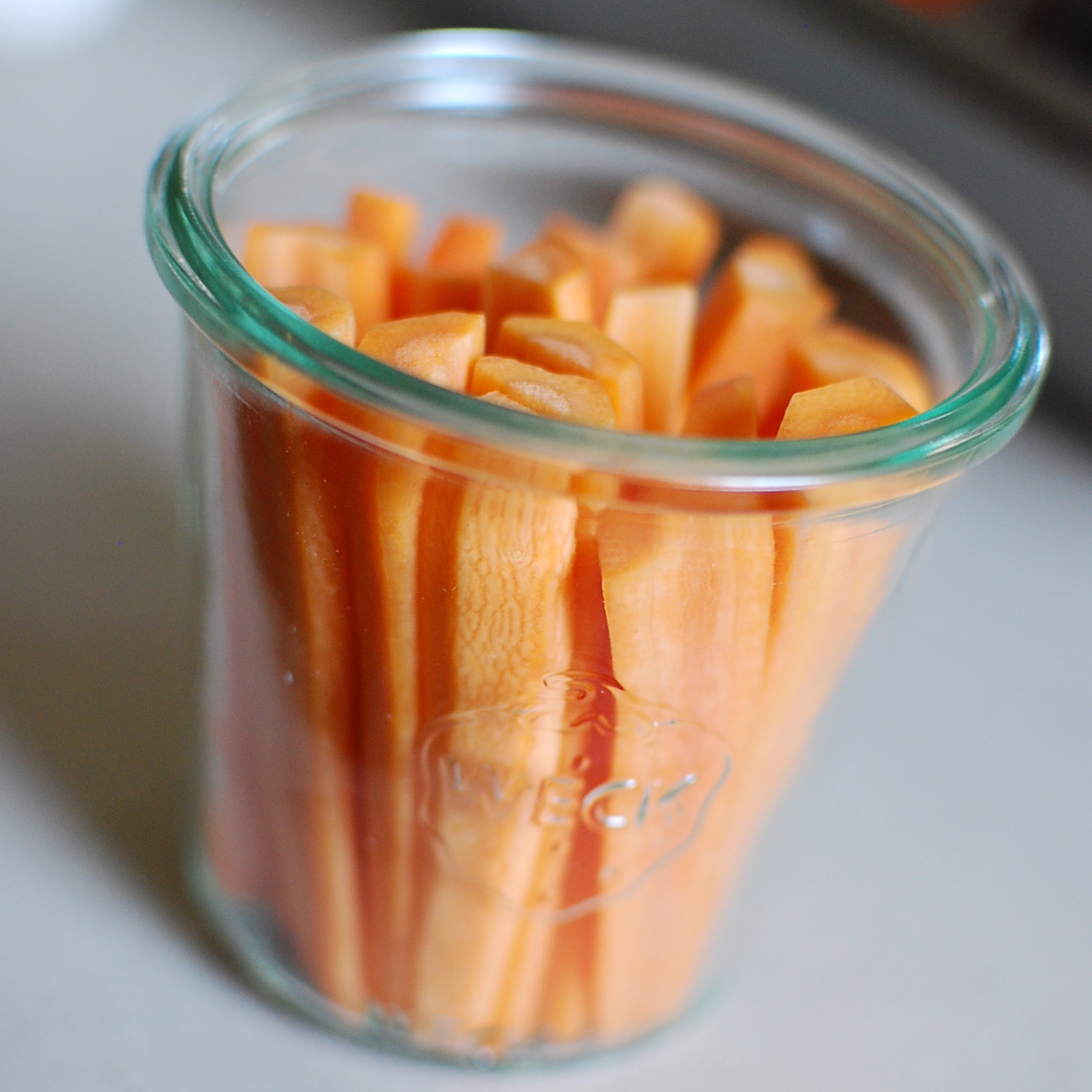 4. Meanwhile, pack the carrot sticks tightly into your jar.