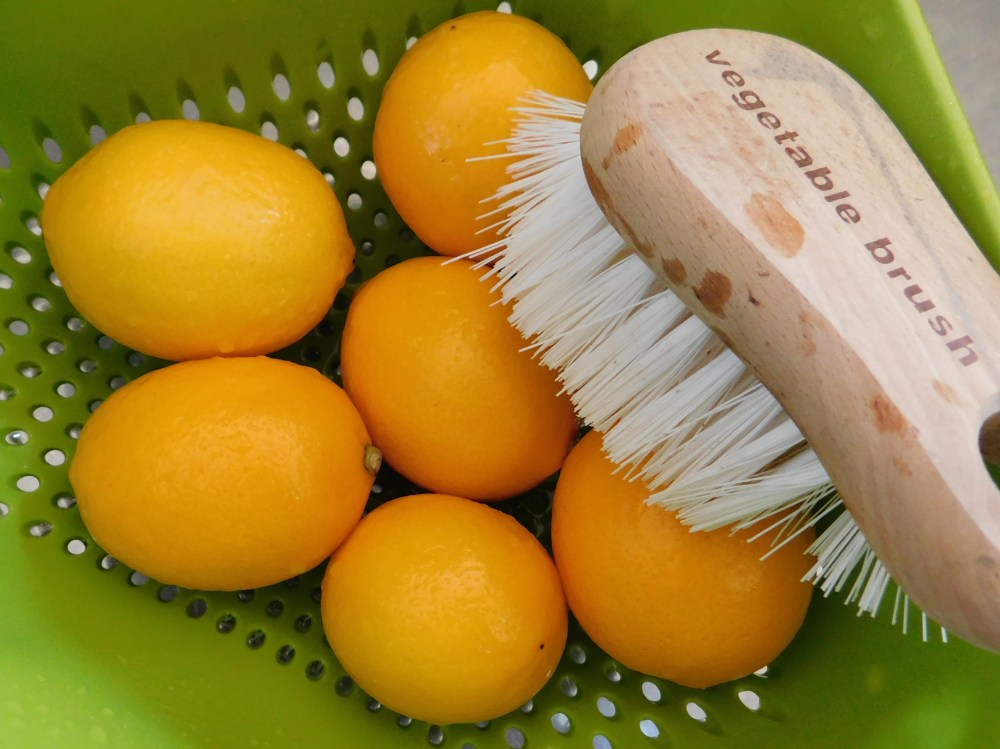 - about 1 pound fresh, unblemished lemons (5-6 small, 3-4 large), plus one extra