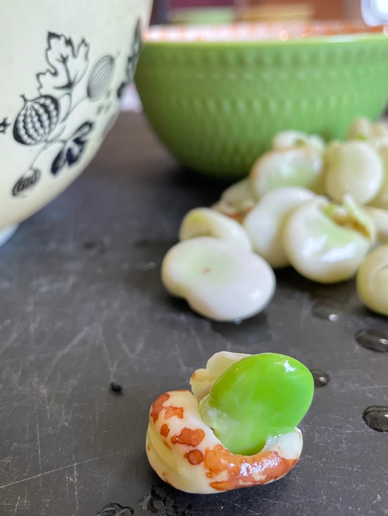 - 2 pounds fava bean pods (should yield about 1 cup of shelled beans)