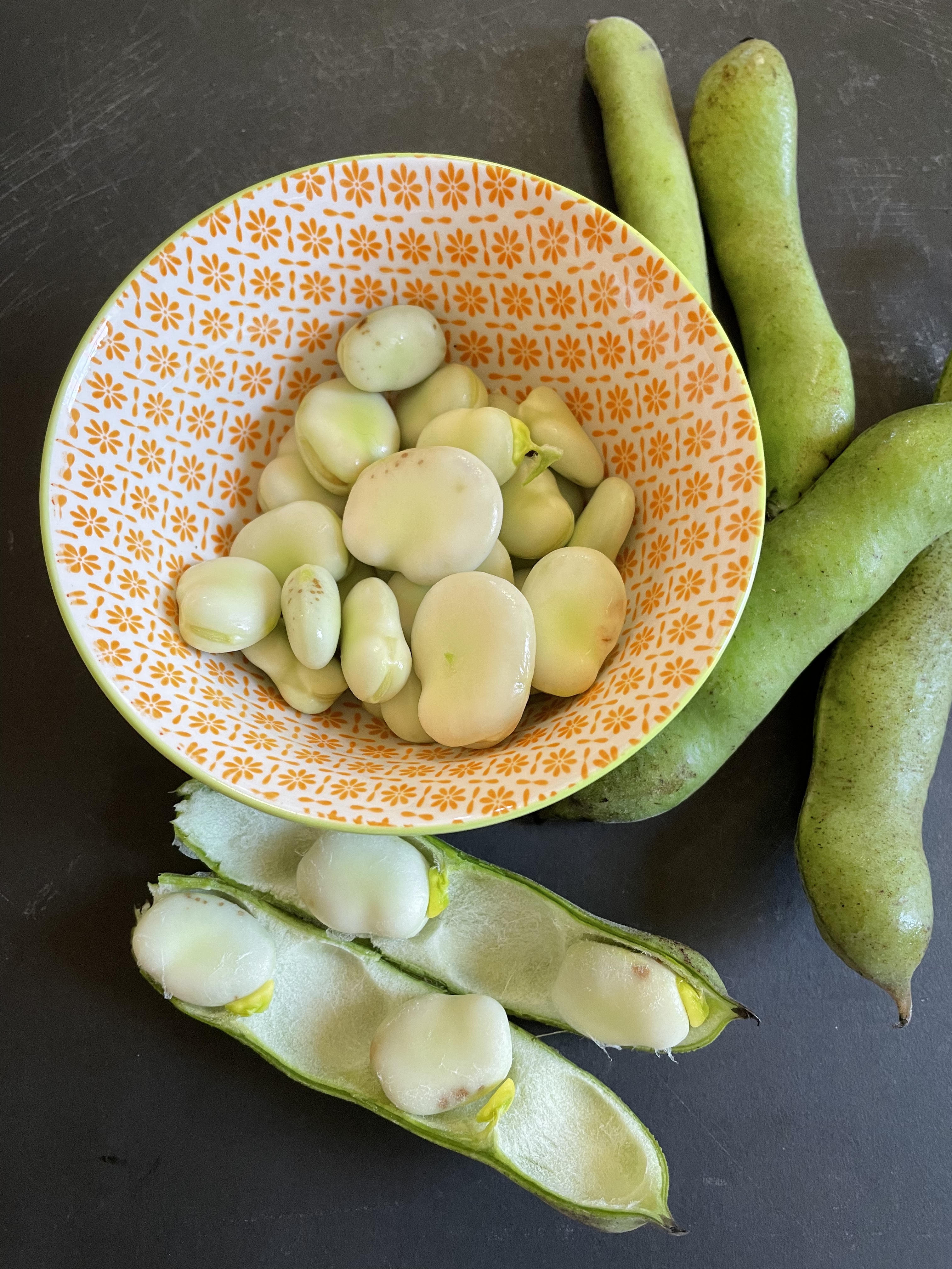 - 2 pounds fava bean pods (should yield about 1 cup of shelled beans)